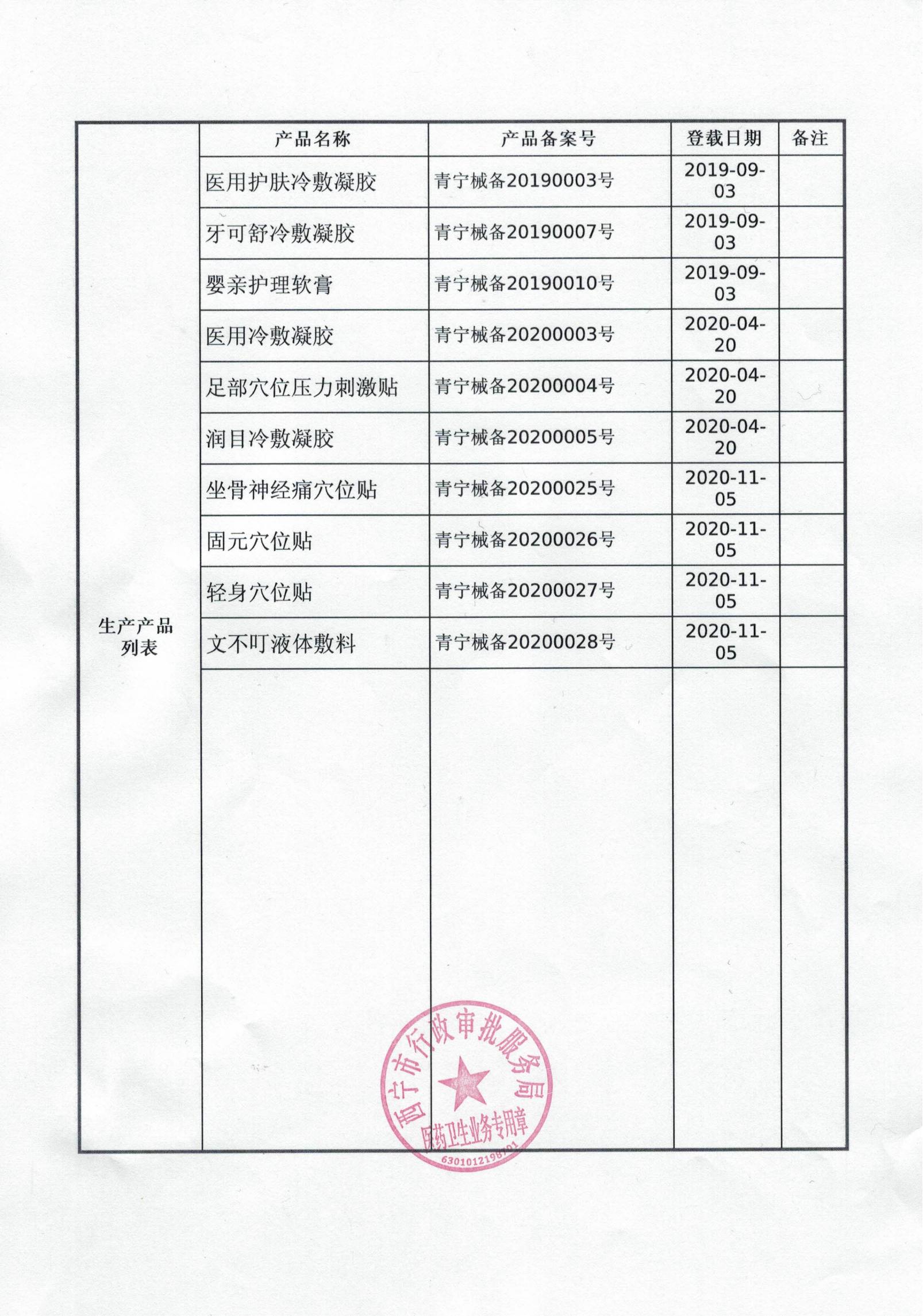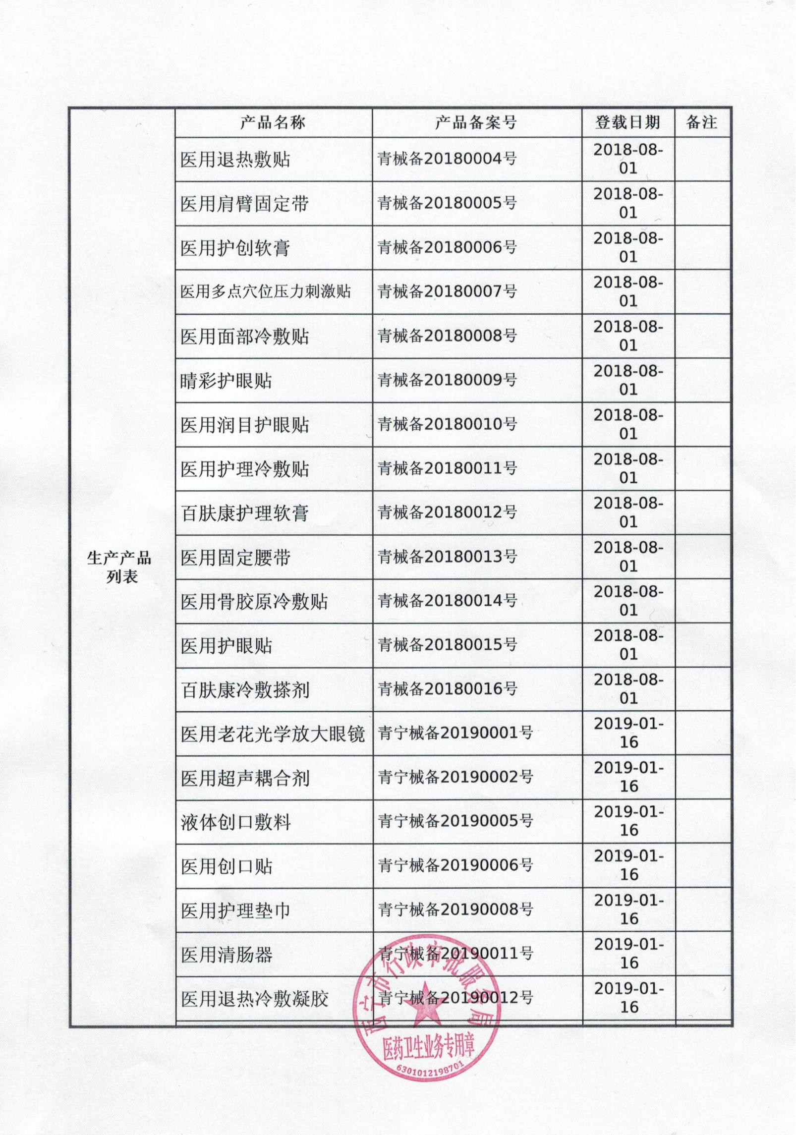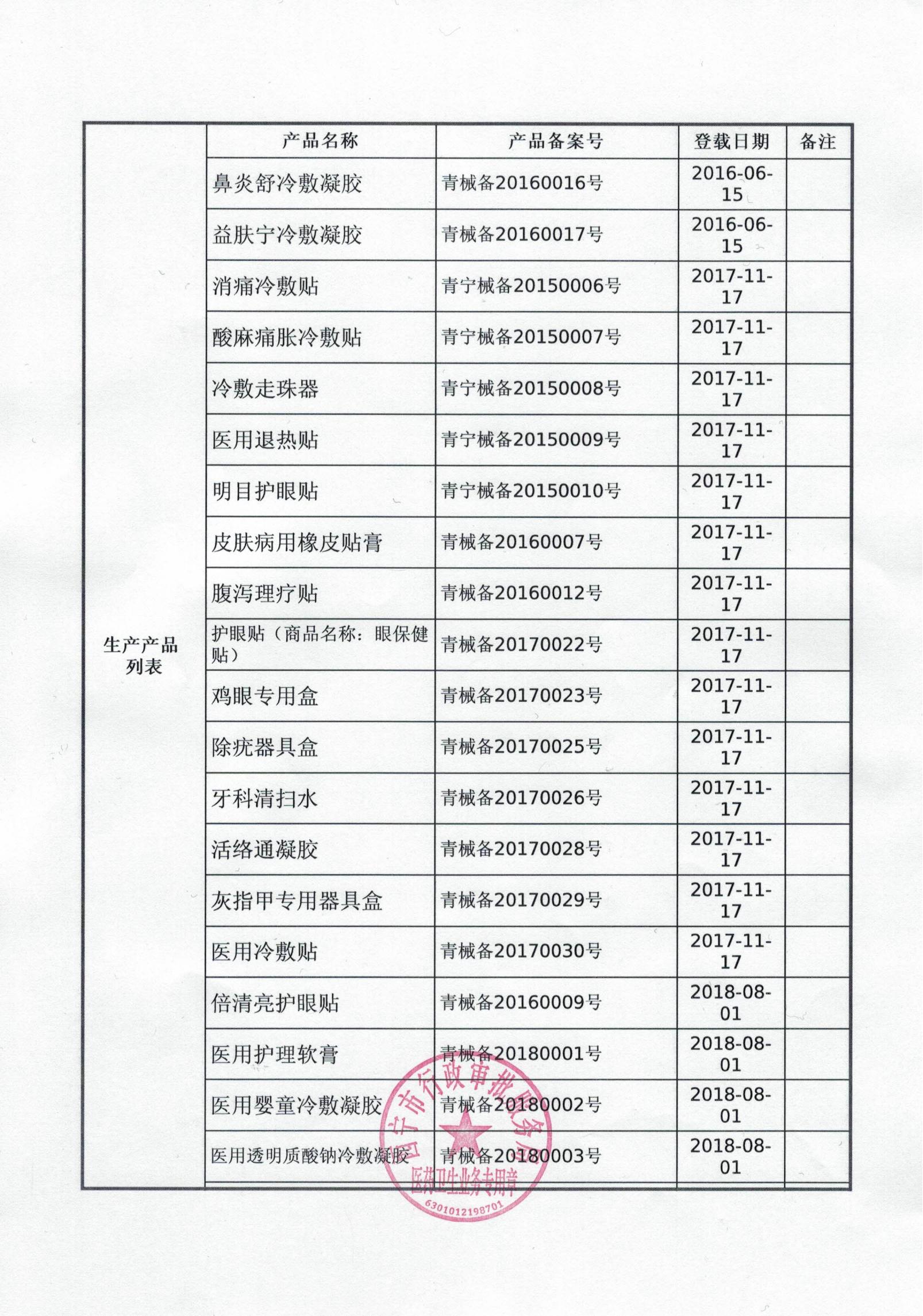 第一類醫(yī)療器械生產備案憑證