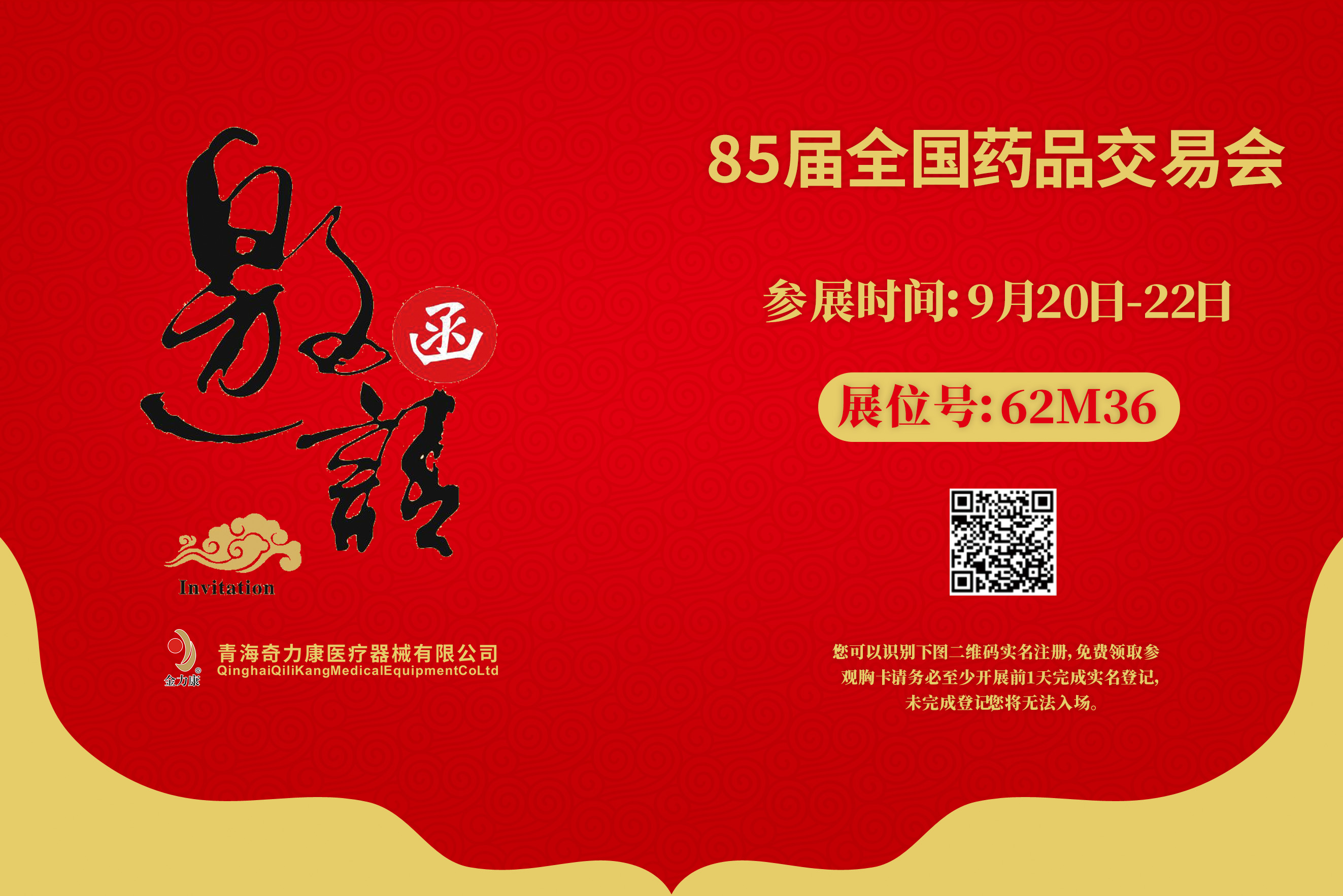 感謝您長期以來對青海奇力康醫(yī)療器械有限公司的關(guān)注與支持,這次85屆全國藥品交易會我司將于2022年9月20日-22日在上海國家會展中心參展,展位號:62M36,青海奇力康在此向您發(fā)出誠摯邀請,真誠期待您的參觀!